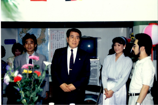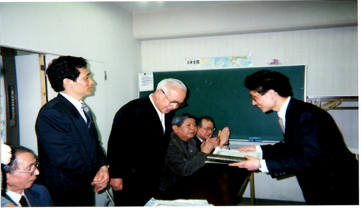初代理事長 金国英明(元日中文化事業協会会長・作曲家)、後援会 横沢会長